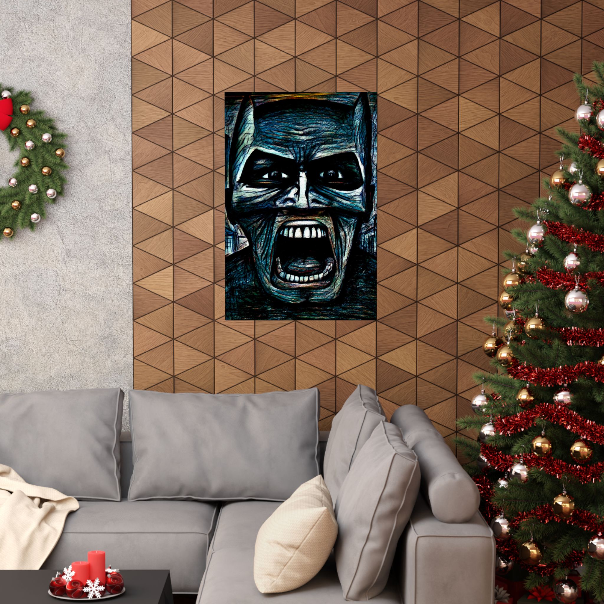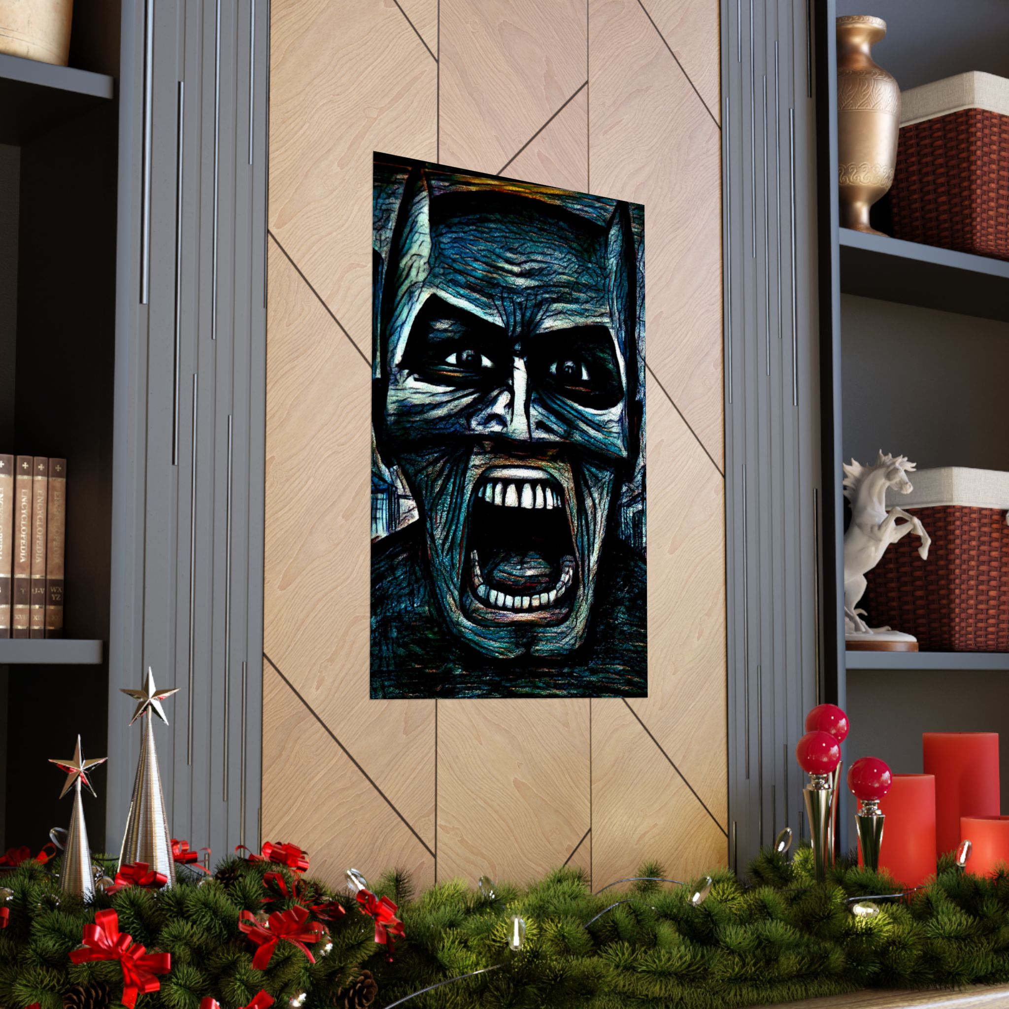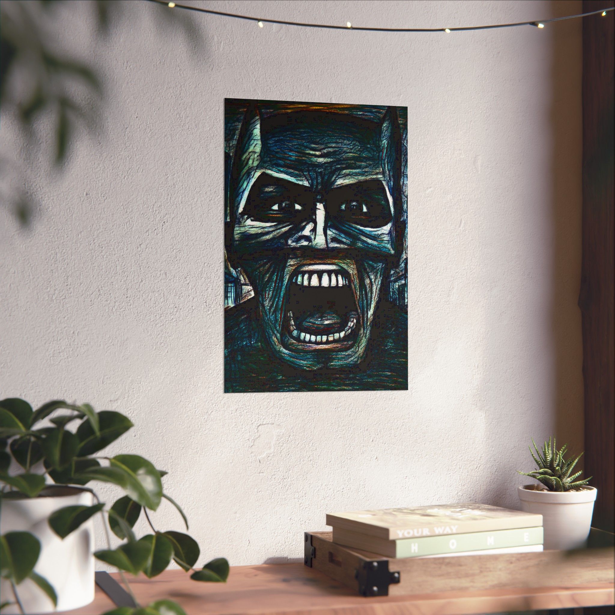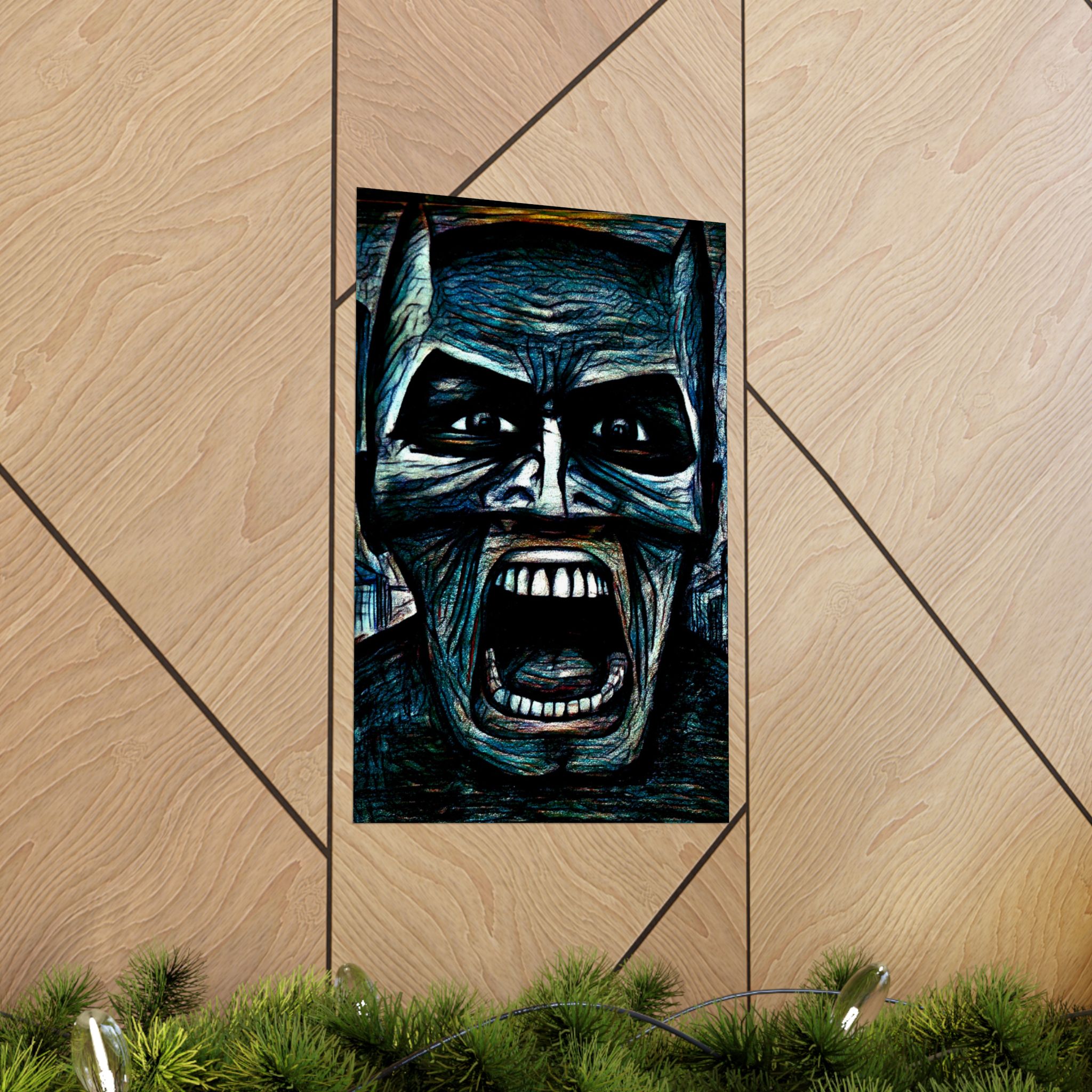 A striking matte poster that channels the raw intensity of a hand-drawn, colored-pencil Batman by Mark Urich. Dark, charged lines meet rich, layered color on museum-grade archival paper, giving the image weight and presence on your wall. The matte finish softens glare so the moodier tones read naturally under ambient indoor light. Hang it where late-night sketch sessions, comic runs, or a dedicated gallery wall can catch that brooding energy — the poster reads like a moment paused in a graphic novel: tense, tactile, and unapologetically adult.