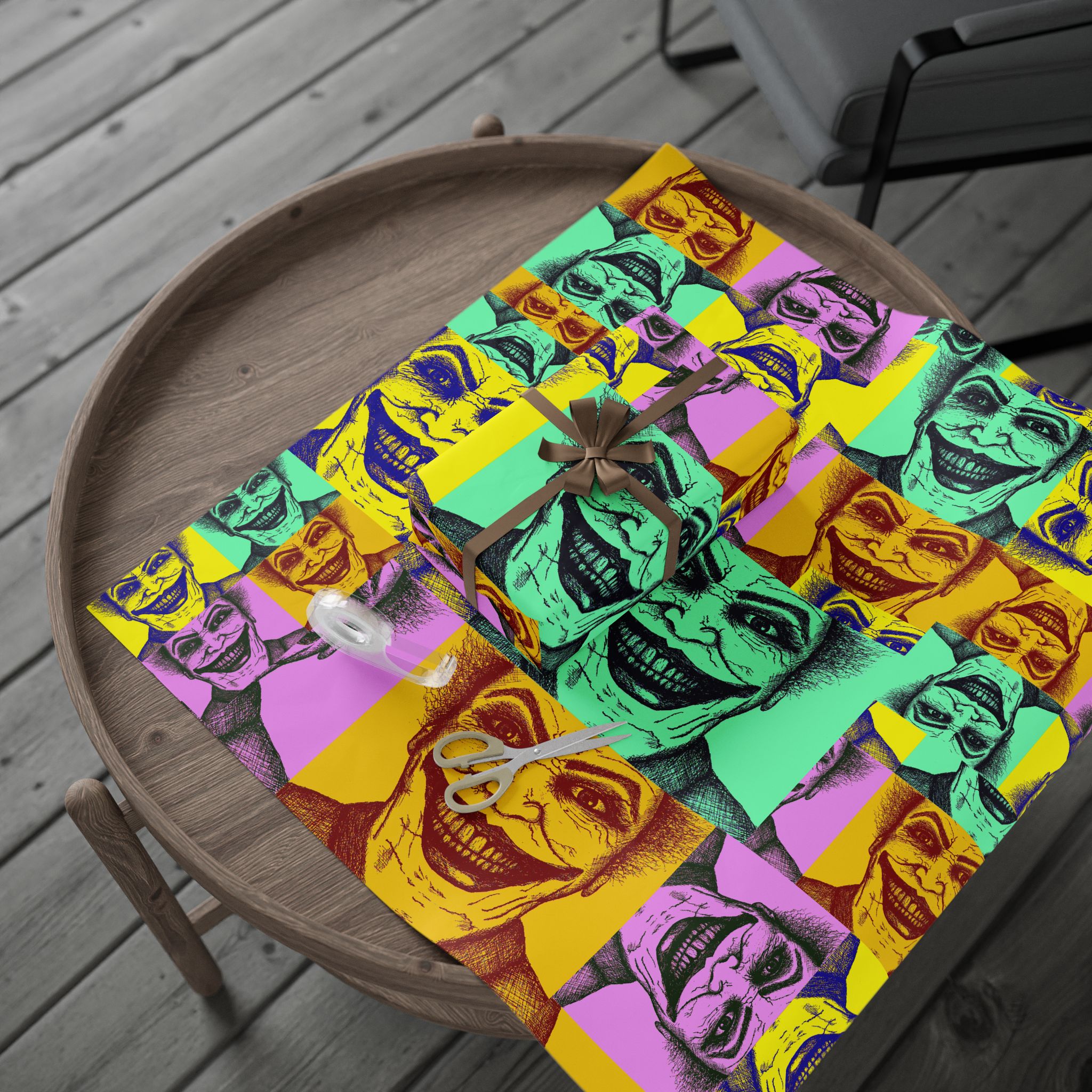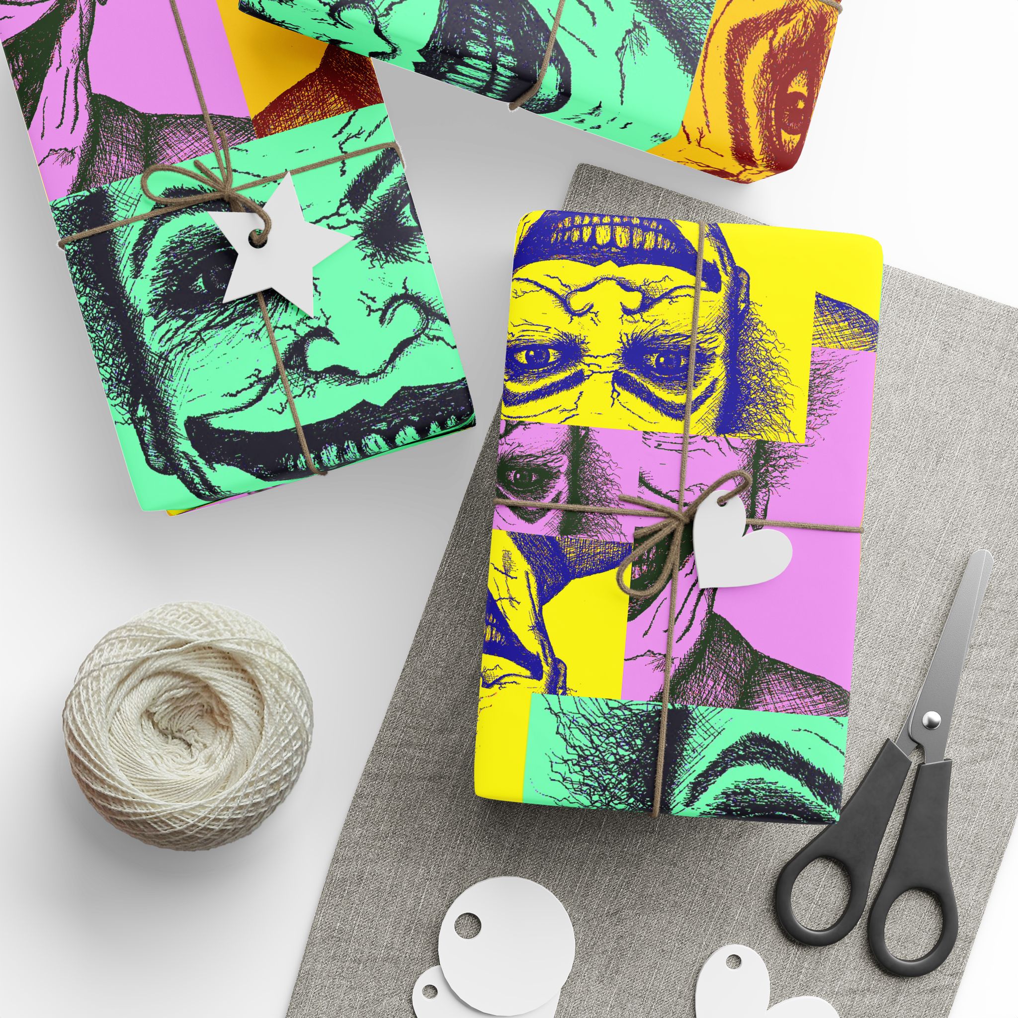 Lively, slightly deranged, and fun—this wrapping paper brings a pop-art twist to gift-giving. A colored-pencil sketch of the Joker, caught in a menacing grin and scattered with wicked laughter, covers the sheet in bold, hand-drawn energy. The look reads like a comic-book fever dream: rough pencil strokes, bright pop-art tones, and that unsettling smile that keeps the eyes moving. Use it when you want the unwrapping to feel like a dramatic reveal—movie-night swag, birthday mischief, or a themed party where bold visuals set the mood. The single-sided print lets the pattern take center stage, and the high-definition print ensures each pencil line and color pop stays crisp. It’s for people who collect the strange, love cult-favorite characters, or simply want a wrapping that makes a statement right from first glance.